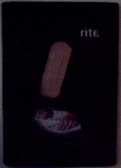 This book has been covered with blackboard paint, except for the particle "rite" and a pair of hands writing on a desk. A plaster is also stuck to the cover.